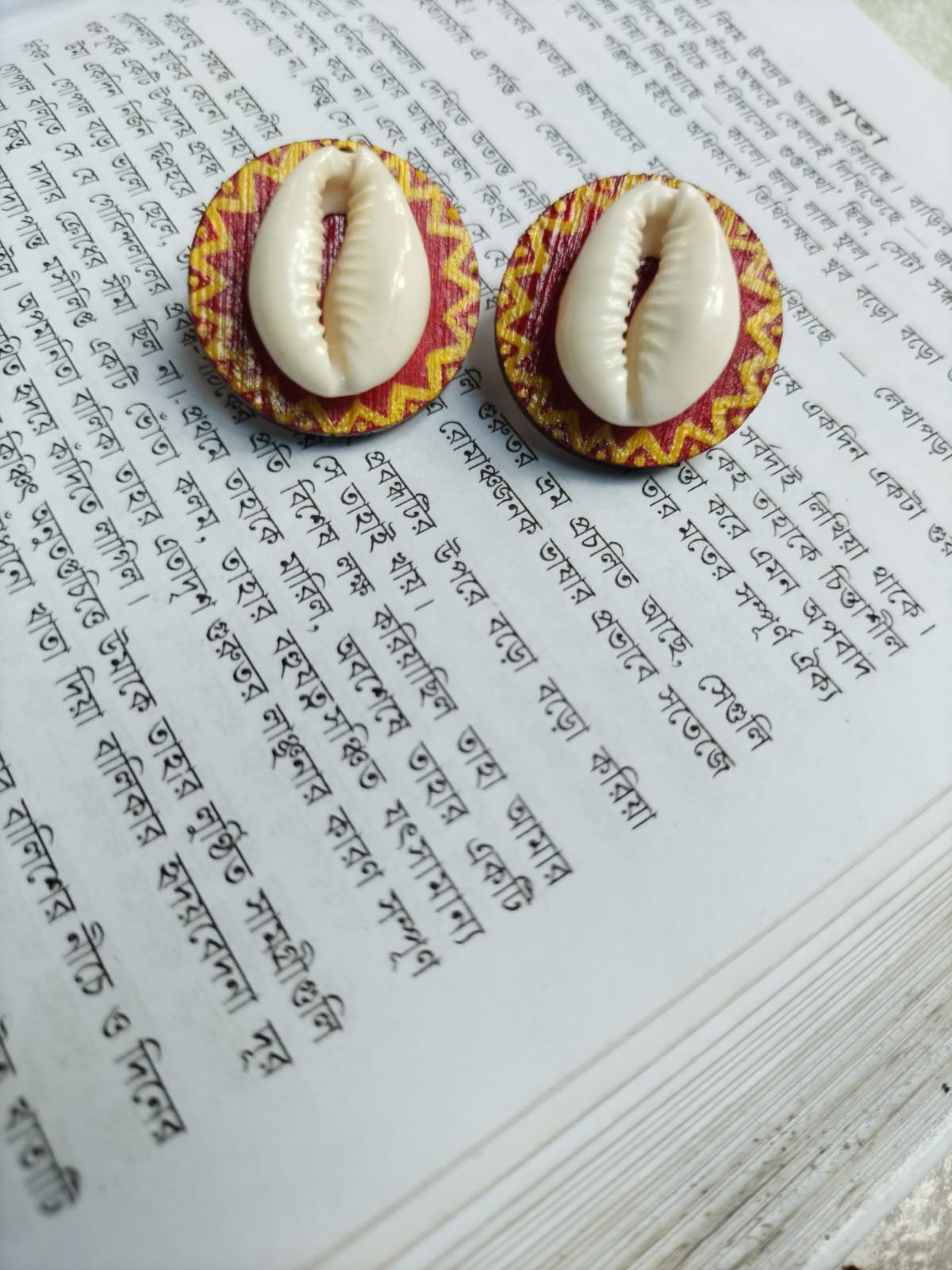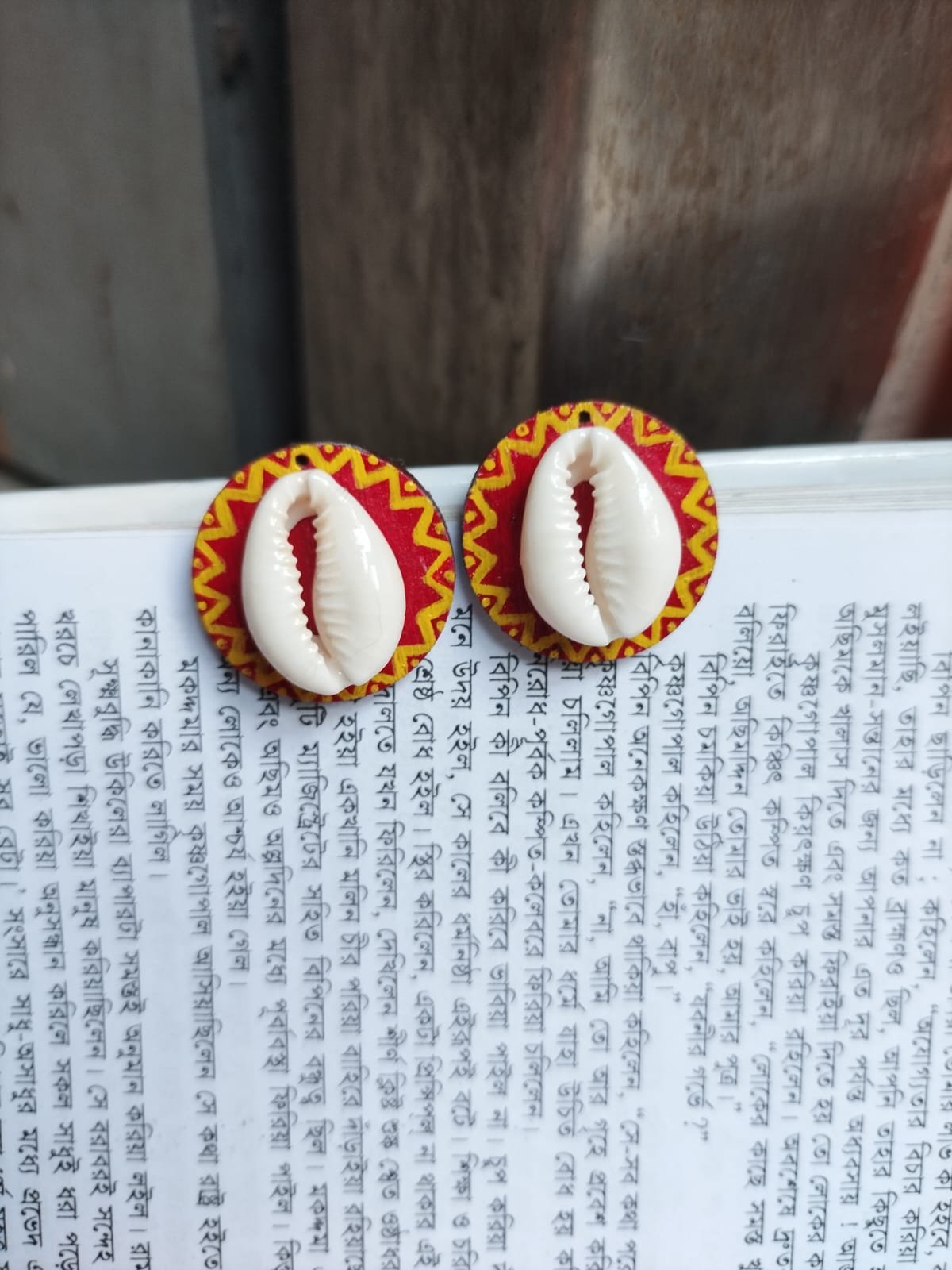 হাতে অংকিত এই কড়ি টপ দুলটি যেকোনো শাড়ি বা কূর্তির সাথে খুব মানানসই হবে।