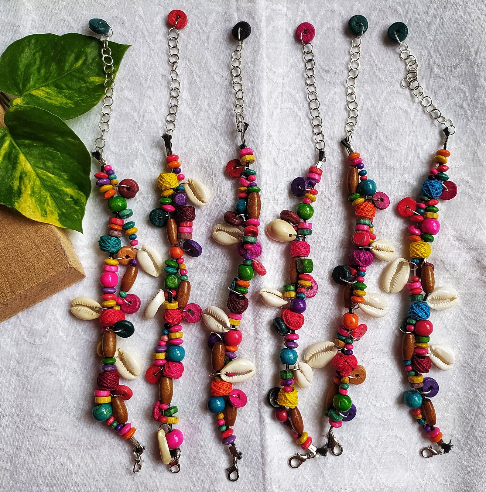 Add a touch of free-spirited  charm to your style with this handcrafted boho bracelet. made with vibrant, multi-colored beads in various shapes and sizes, accented with a natural cowrie shell. Perfect for everyday wear