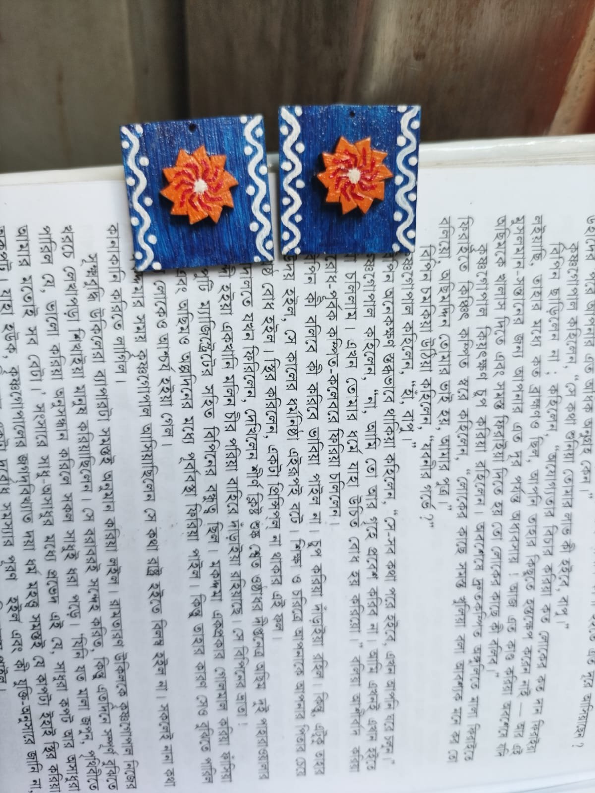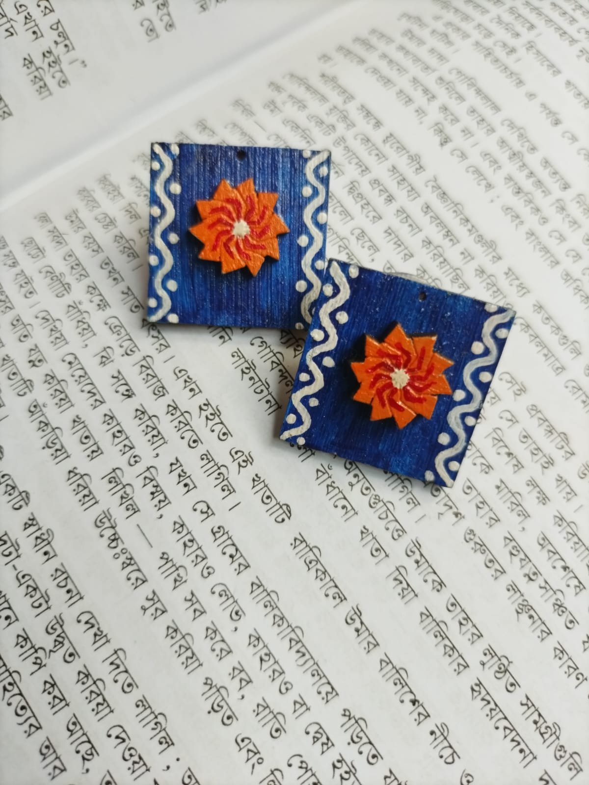হাতে আঁকা মালতী স্টাড ইয়াররিংস, যা যেকোনো কুর্তি বা শাড়ির সঙ্গে দারুণ মানিয়ে যায়। হালকা, রঙিন আর নরম সজ্জায় এটি আপনার লুককে মুহূর্তেই করে তোলে আরও আকর্ষণীয় ও সুন্দর।