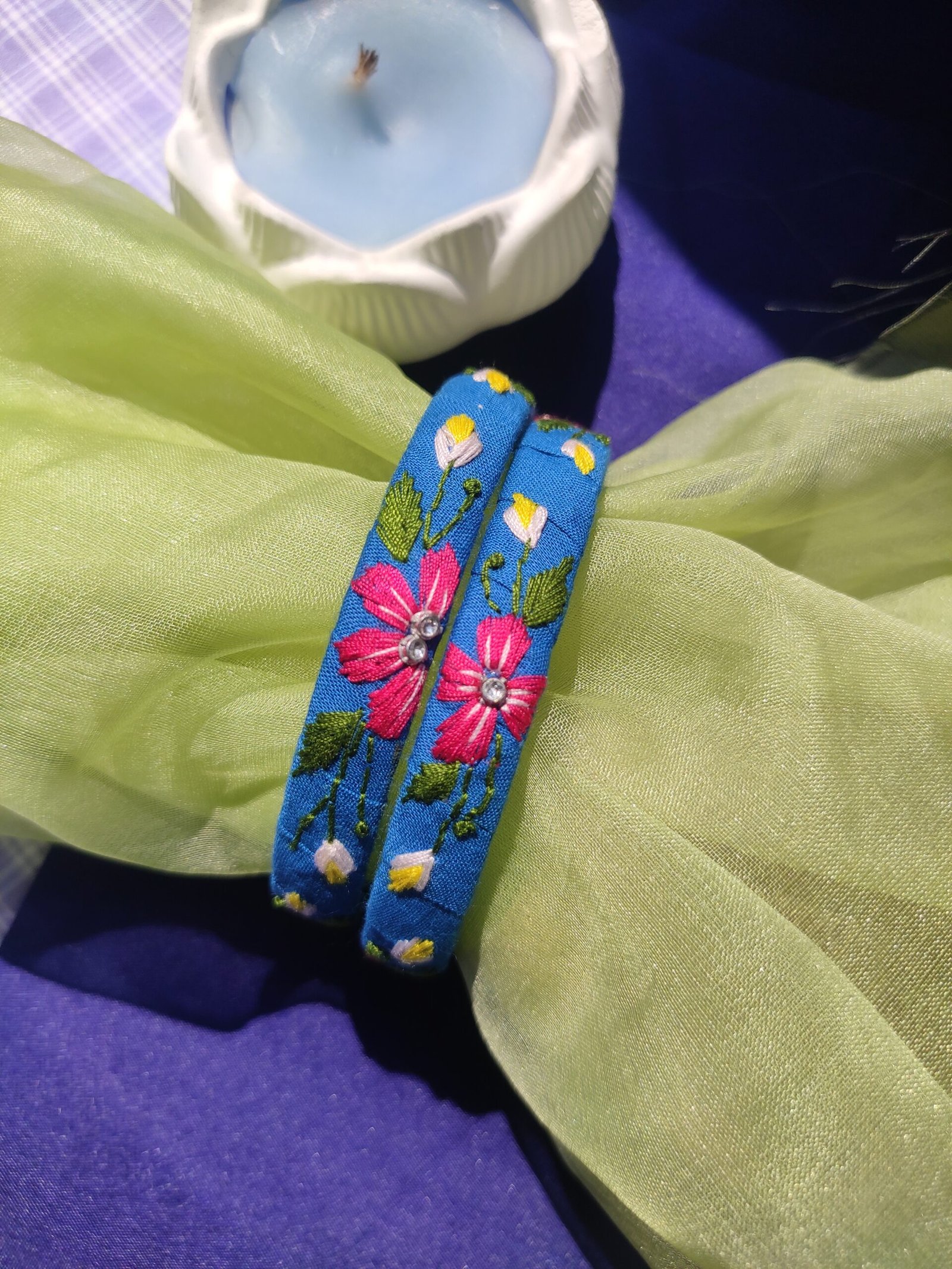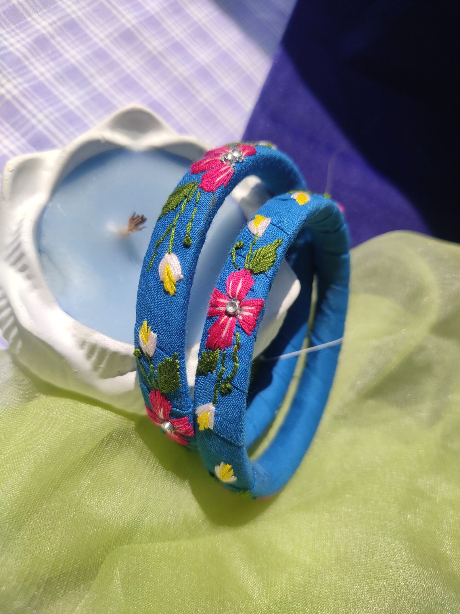 Hand Embroidery Soft Cotton Fabric Bangles pair.