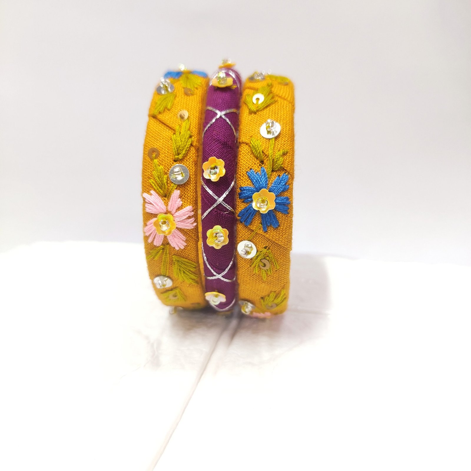 Embroidery  Cotton Fabric Bangle Set for Women & Girls (set of 3)