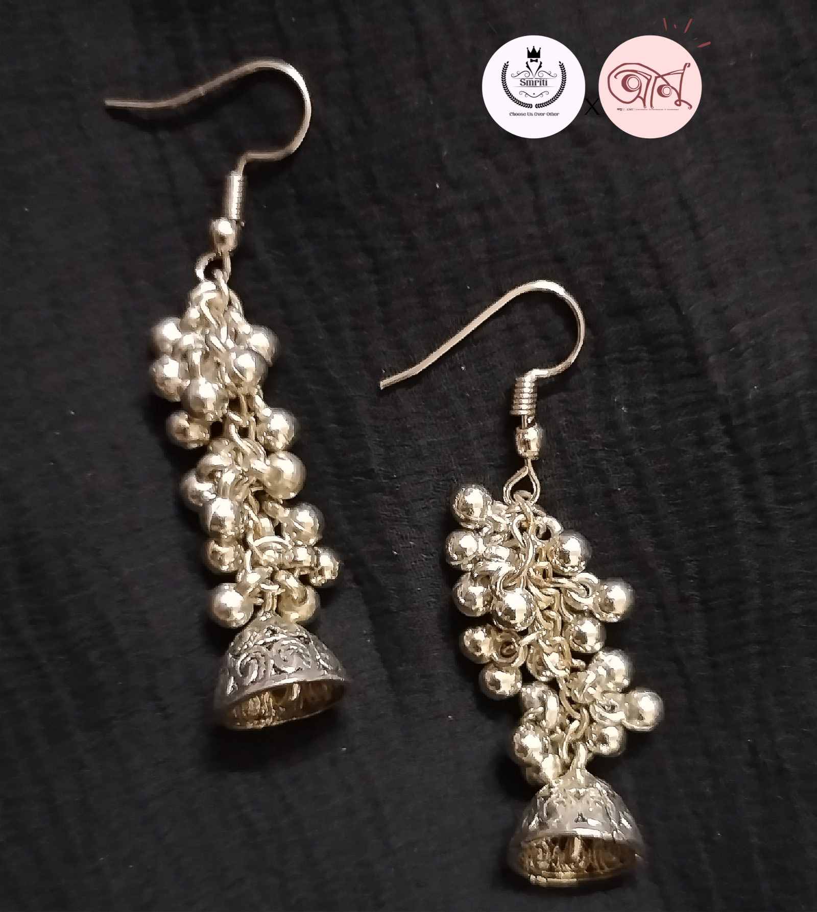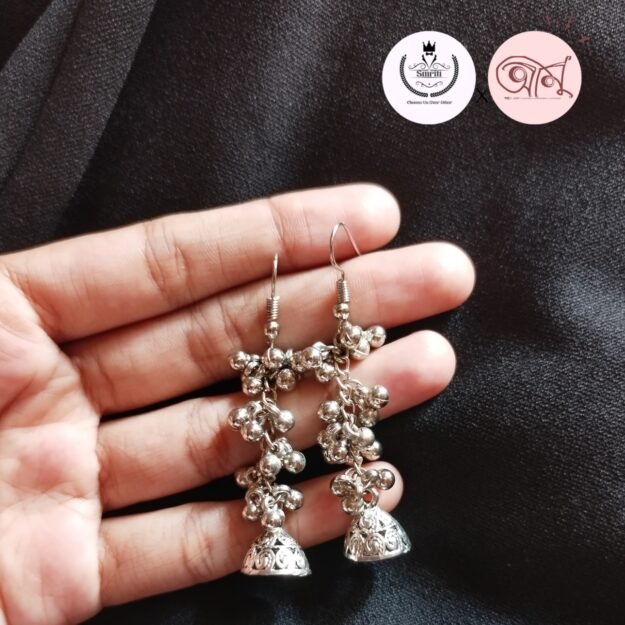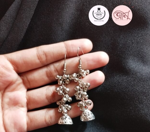 This chained mini jhumka features a delicate traditional bell design paired with a graceful chain for added elegance. Lightweight yet eye-catching, it beautifully blends classic charm with modern flair—perfect for enhancing both festive and everyday looks.