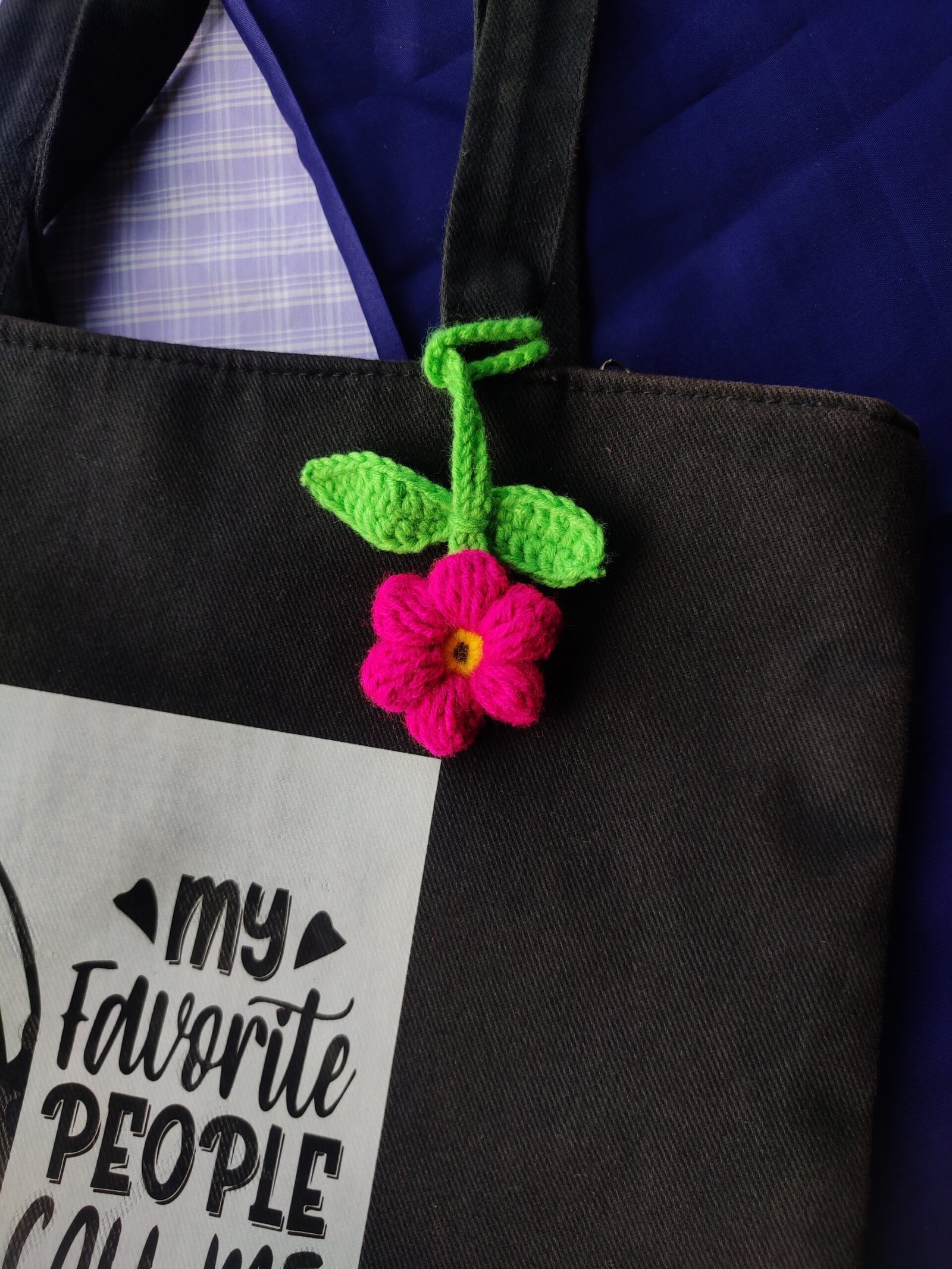 Handmade Crochet Bags Charm: Cute Knitted flower Chain for Bag Decoration.