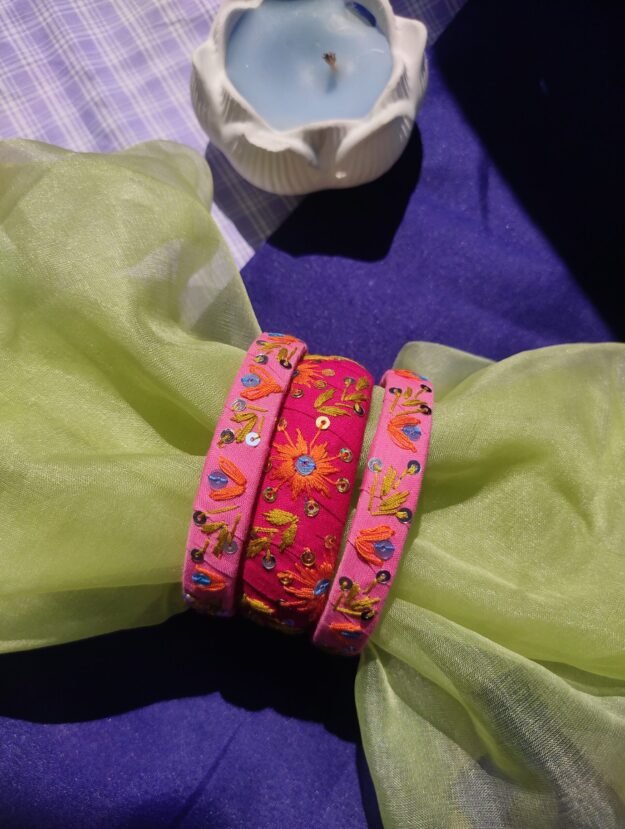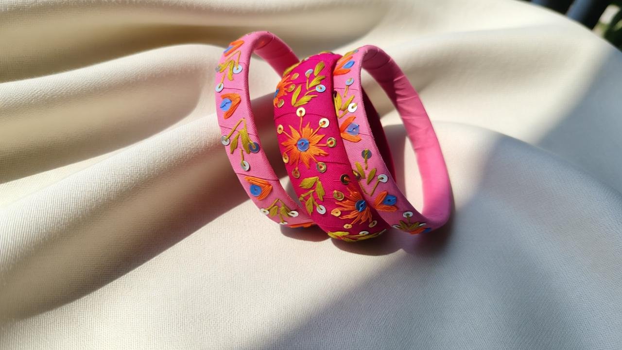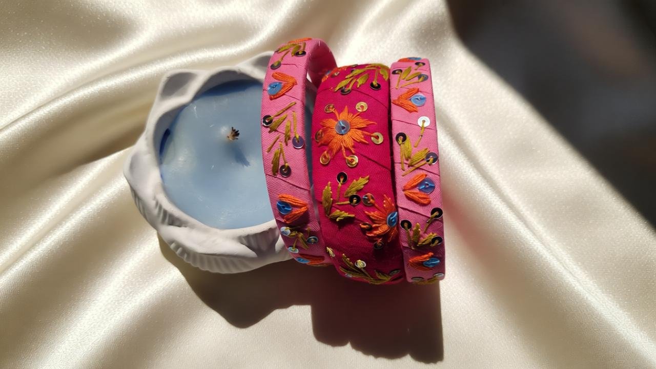 Sequence Hand Embroidery Soft Cotton Fabric Bangle Set for Women & Girls (set of 3)