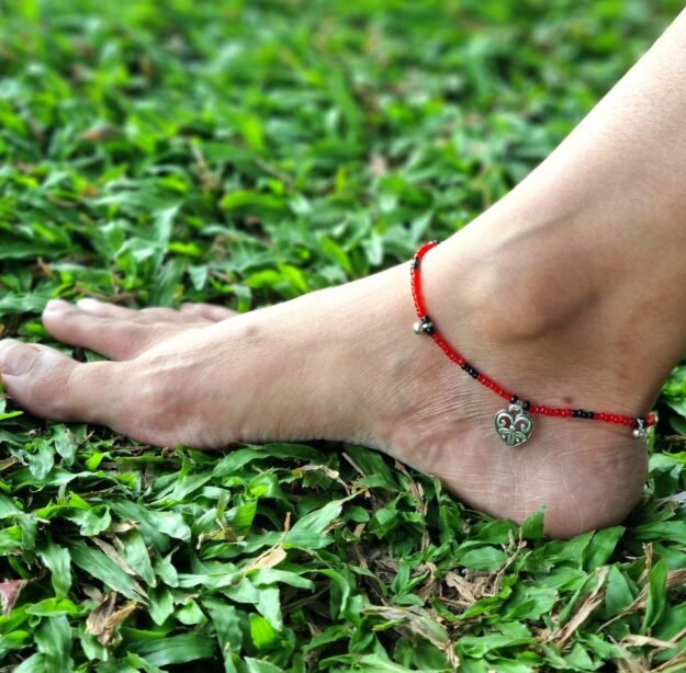 This handmade anklet is crafted from colourful beads & metal charms. It makes your feet shine with personality!