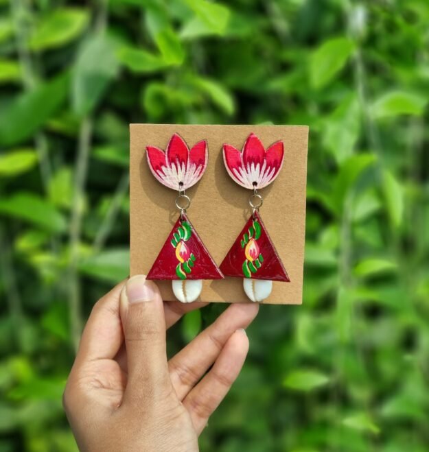 This hand-painted wooden earring showcase a lively mix of colour and culture, inspired by the timeless artistry of rickshaw painting tradition.