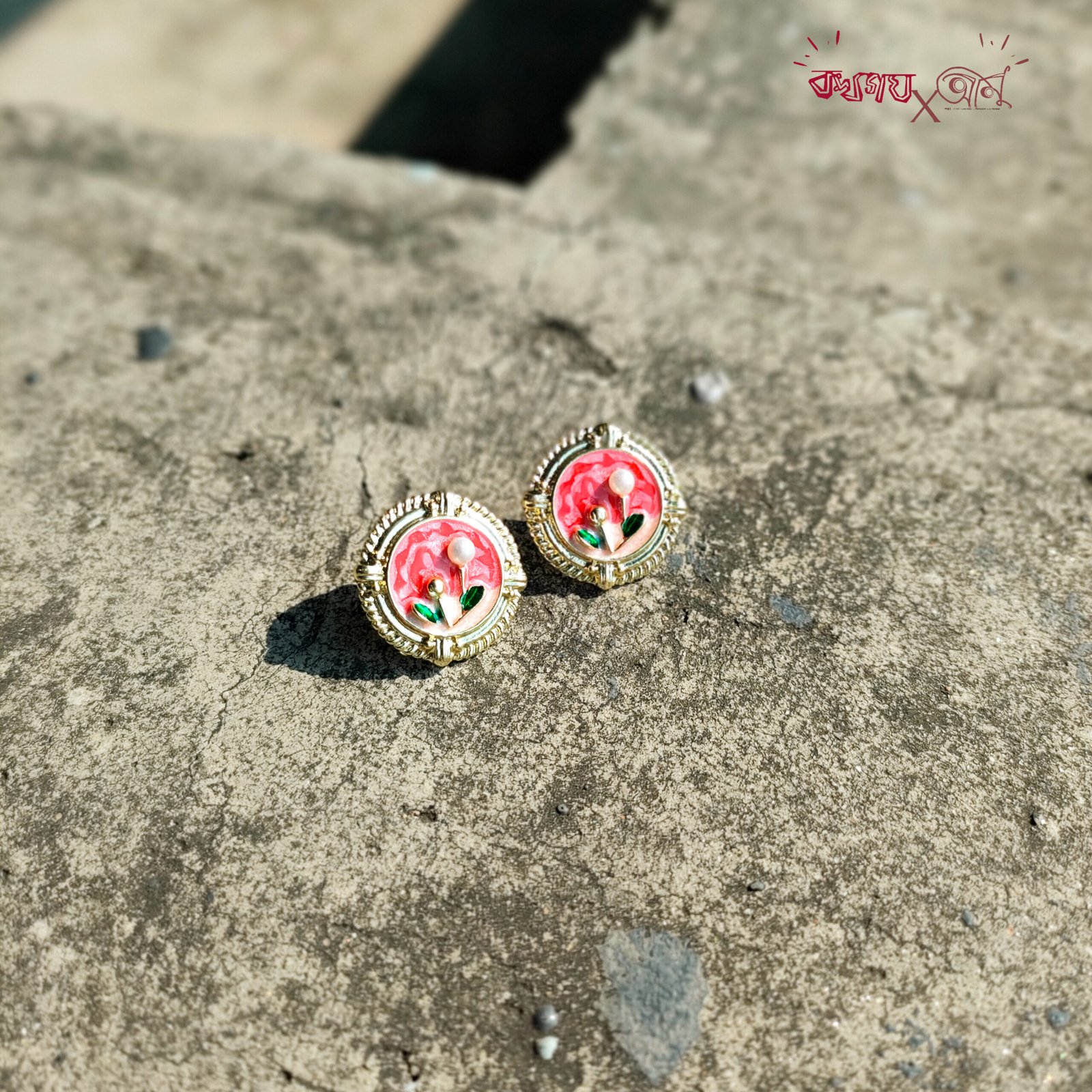 The soft pink 3D blossoms sit over a cool mint-toned backdrop, creating a sweet and elegant contrast. Lightweight and easy to style, these studs are your go-to pick for a subtle yet charming finish.