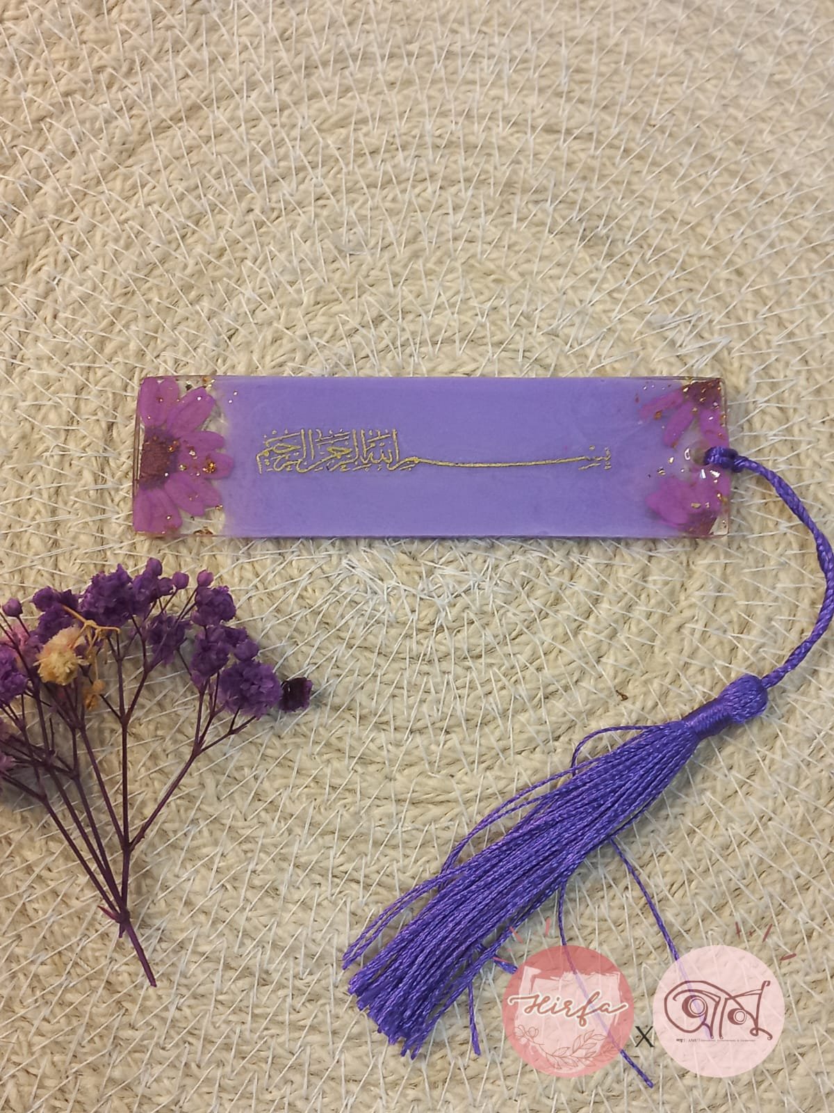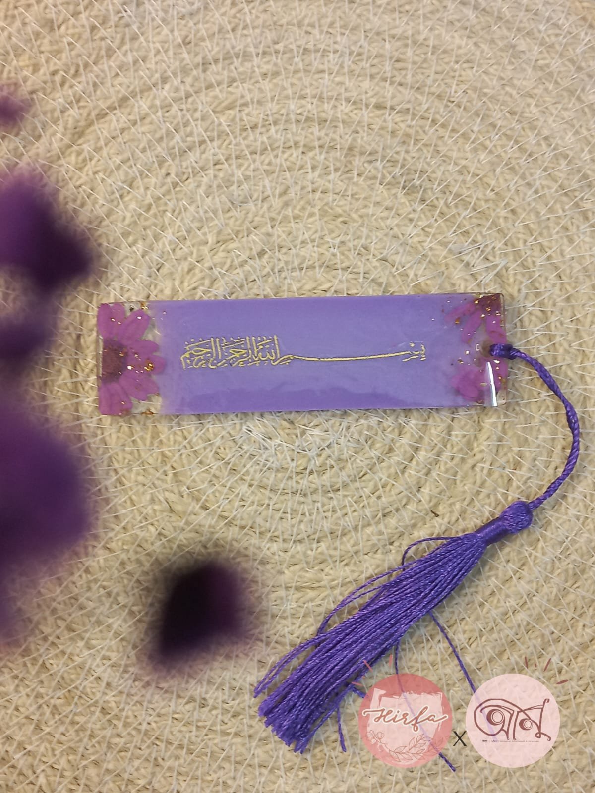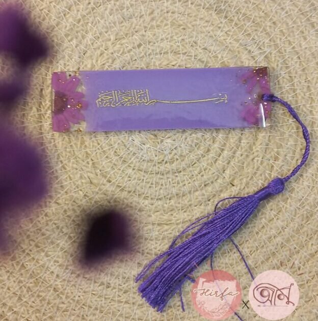 resin mini size book mark ..make with real purple daisy flower and bismillah .. size around 3.8incee