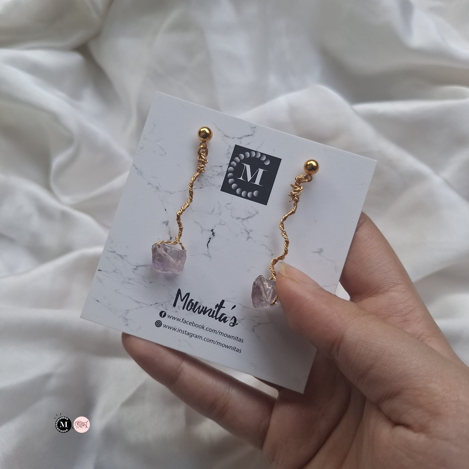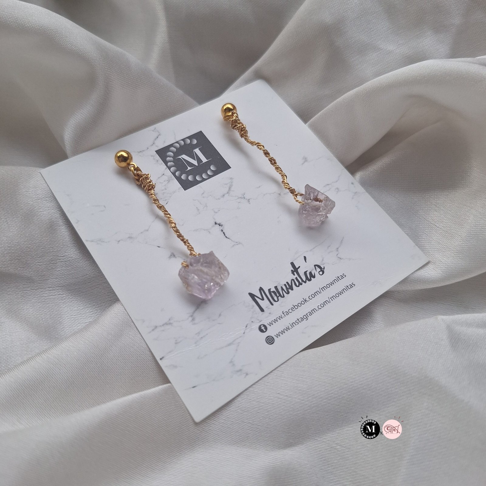Materials : Amethyst (semiprecious) , Golden wire (colour guaranteed), Handcrafted.
