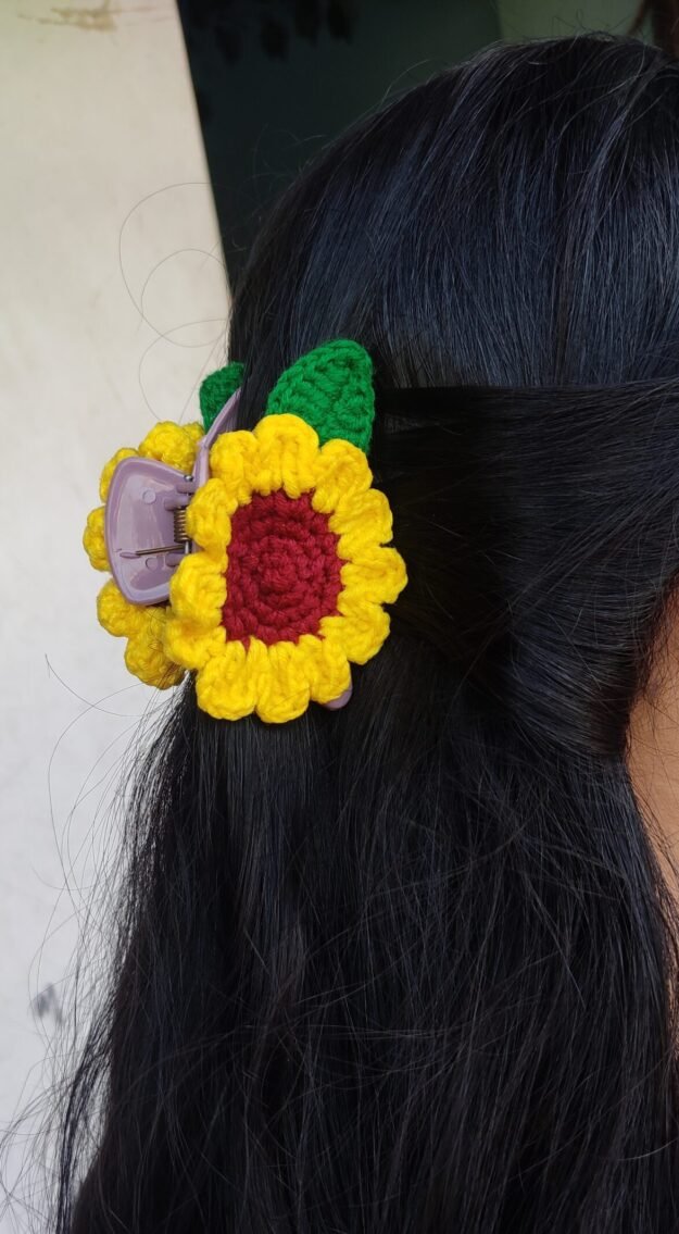 Say goodbye to boring hair days! This handmade sunflower crochet hair clutcher brings a playful pop of sunshine to your everyday style-whether it’s a quick bun or a messy ponytail, you’ll shine.