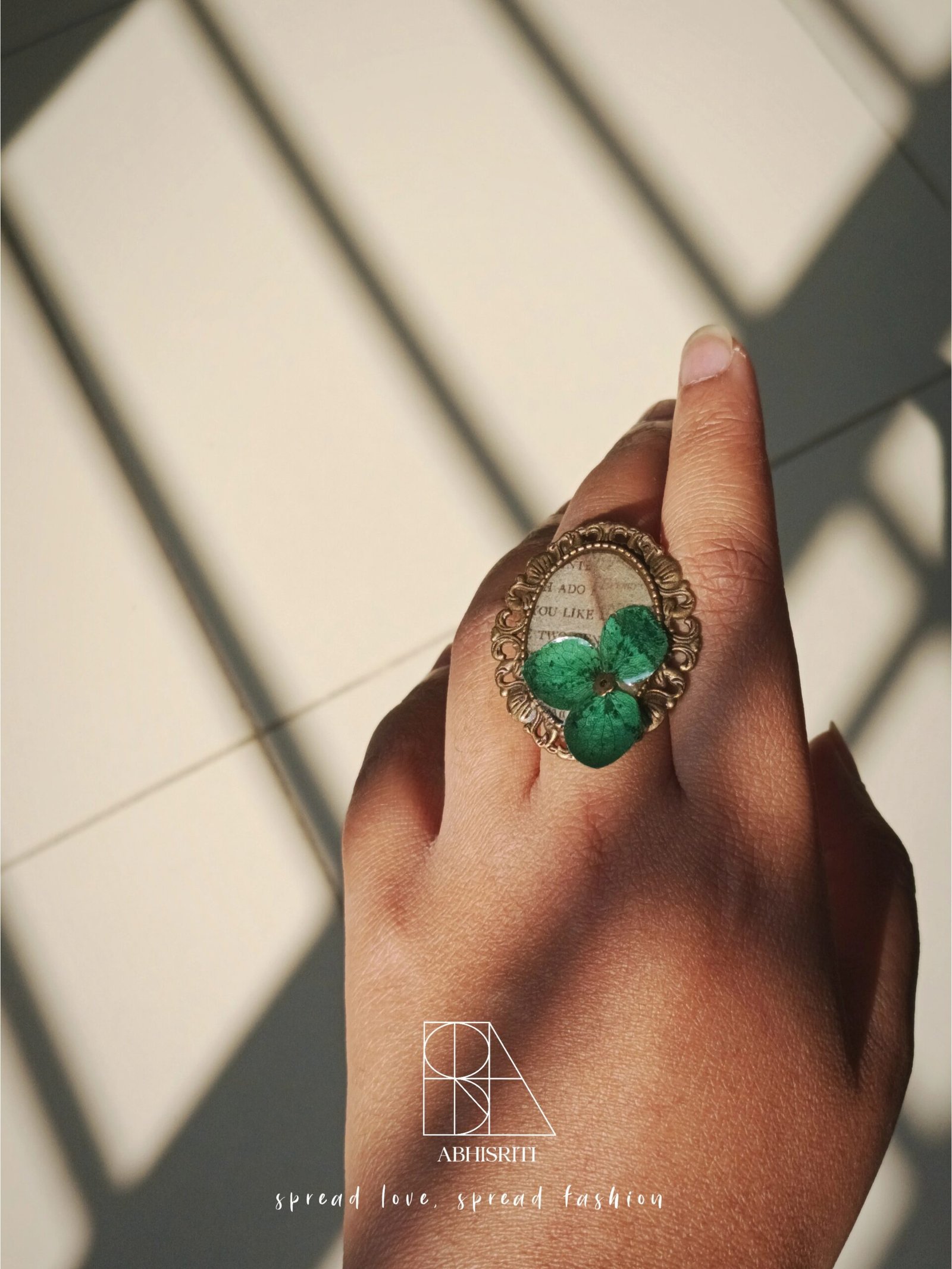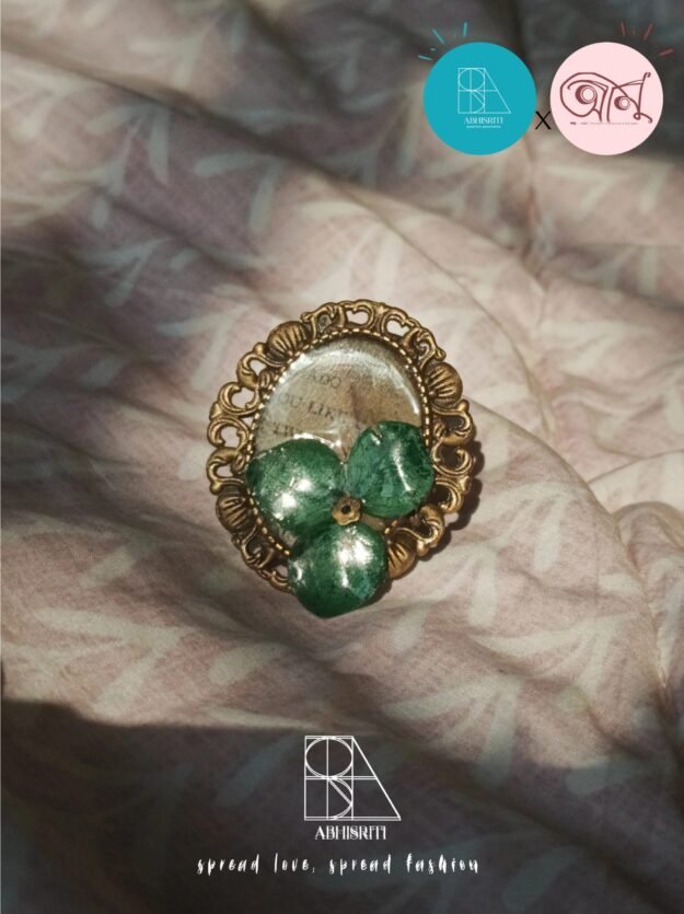 A delicate vintage-style resin ring featuring a real hydrangea flower, preserved in time. Its soft, natural beauty adds a gentle, romantic touch to any look.